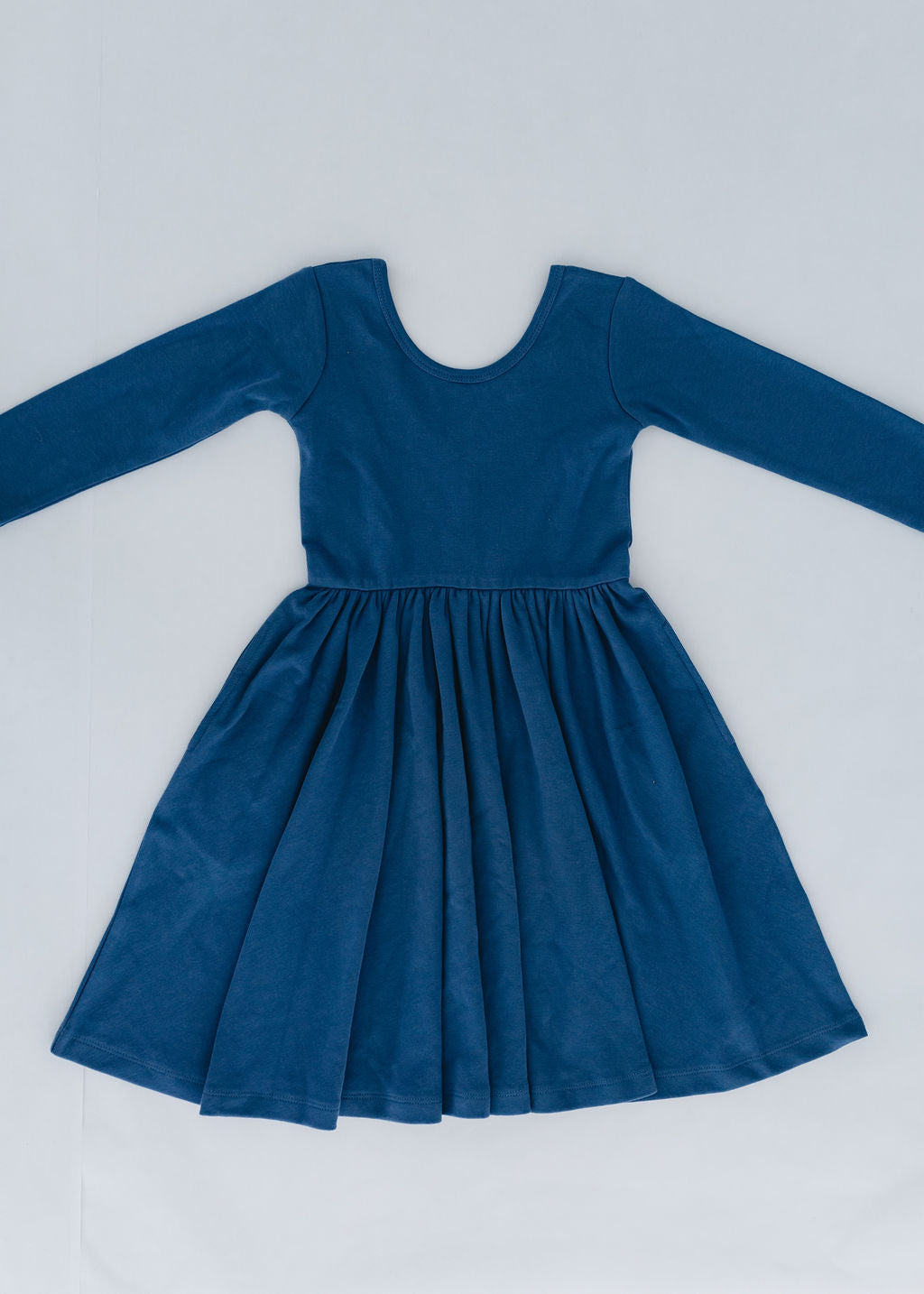 Our signature Good Apples dress is made from stretchy-soft organic cotton and designed with a ballet-inspired silhouette. It features a fitted bodice and sleeves, a graceful scooped back, pockets for all their treasures, and a full circle skirt for endless twirling.